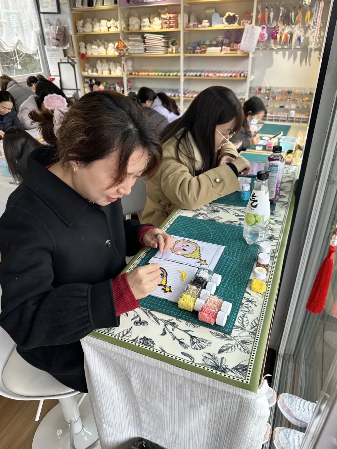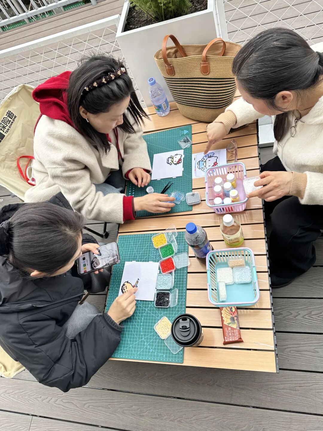 活动现场,色彩斑斓的拼豆与创意模板铺陈开来。女职工们围坐一堂,全神贯注地挑选、定位、拼接,指尖起落间,零散的颗粒逐渐汇聚成栩栩如生的图案。