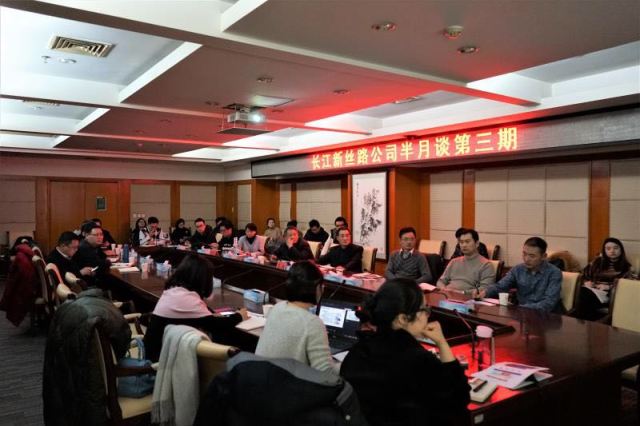 2018年2月6日长江新丝路公司联合武汉市物流协会和武汉现代物流院在交委举办了第三期半月谈,邀请现代物流院副总经理熊焰以“聚焦多式联运,建设现代物流企业”为题做经验分享。物流协会秘书长、现代物流院总经理石君、集团经营管理戈部长及成员、安保部阮部长、黄冈公司彭嘉鑫总经理及成员莅临指导。