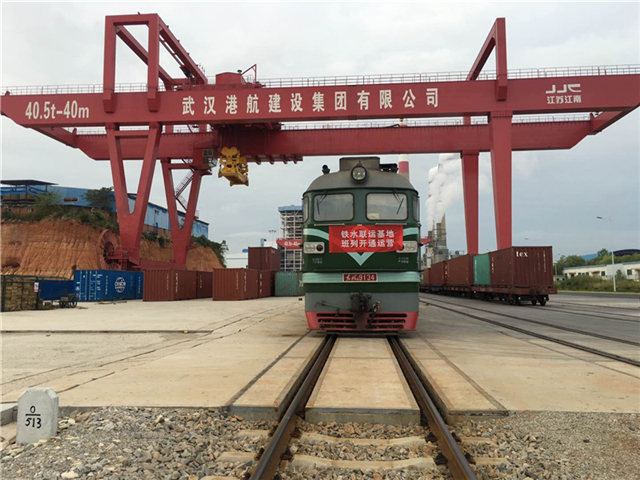 8月14日7点30分,满载100标箱家具、植物油、石制品等货物的列车从阳逻国际港集装箱铁水联运示范基地开出,经襄渝线、达成线运行,驶往四川城厢站,预计全程历时36小时。“上海-武汉-川渝”是公司重点打造的示范线路之一,可缓解三峡翻坝难题,降低物流成本,提高转运效率。该列车的开出标志着阳逻国际港集装箱铁水联运示范基地已具备定制发运“点对点”快速货运班列的能力。