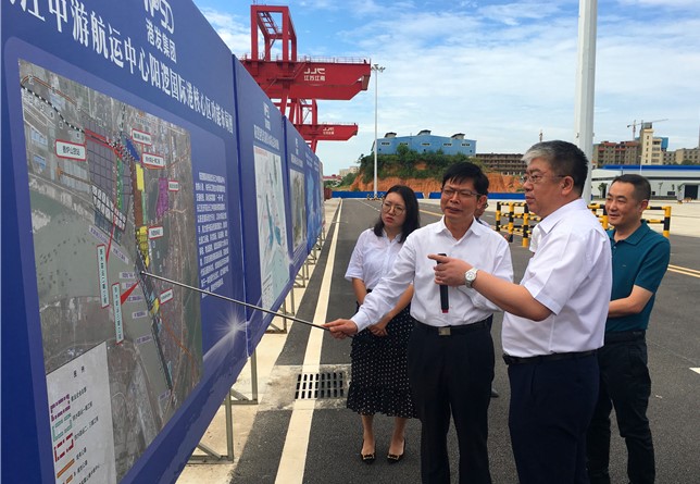 9月7日下午,长江航道局付绪银局长一行在集团公司领导涂山峰、董政、施载玲同志的陪同下到铁水联运一期进行参观调研,在基地观看了展板并对货运通道、业务现状进行了详细了解。