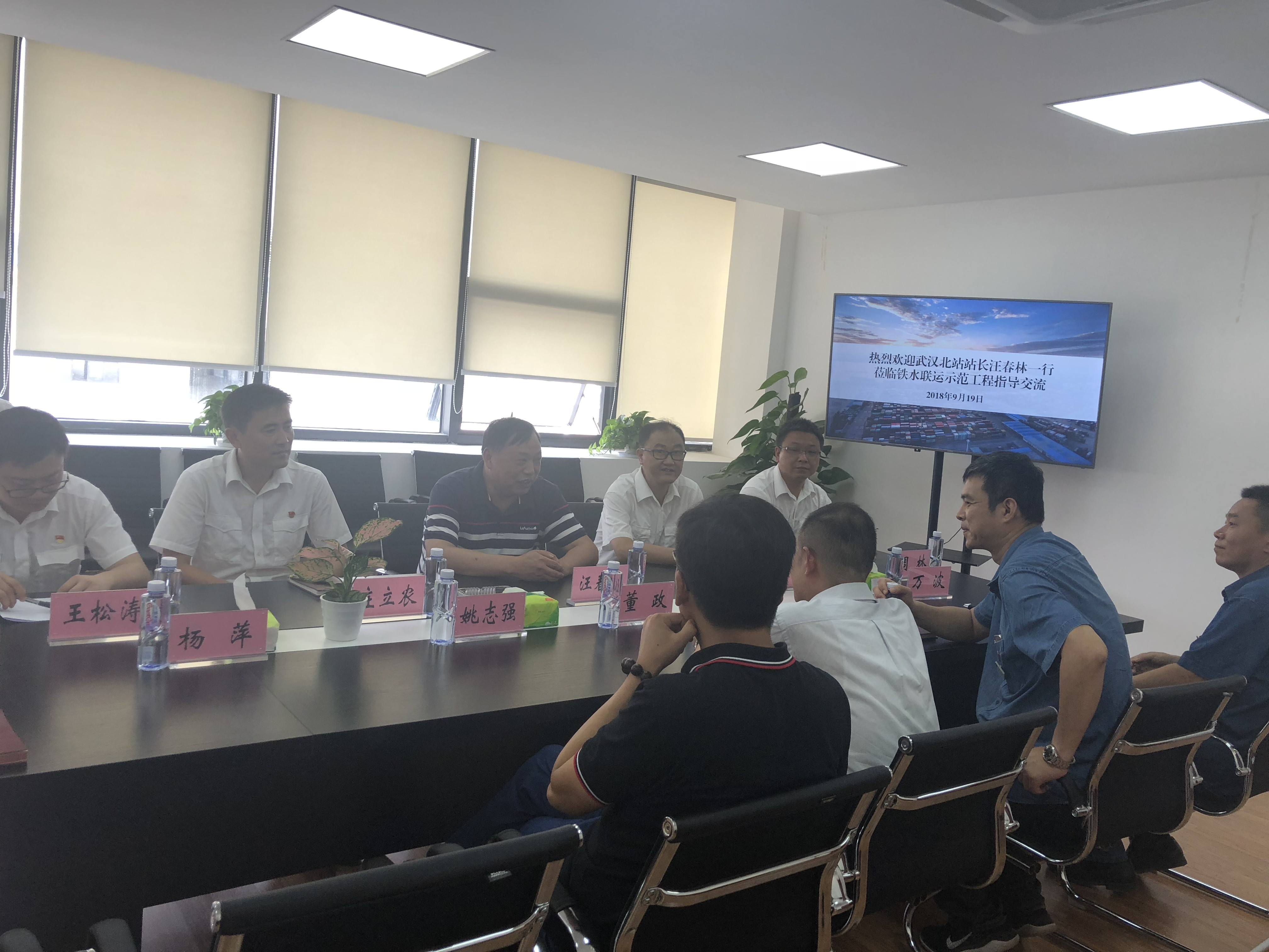 9月19日下午,武汉铁路局武汉北站站长汪春林一行人到铁水联运基地调研并就基地现场作业情况、班列发运等事项进行了座谈。