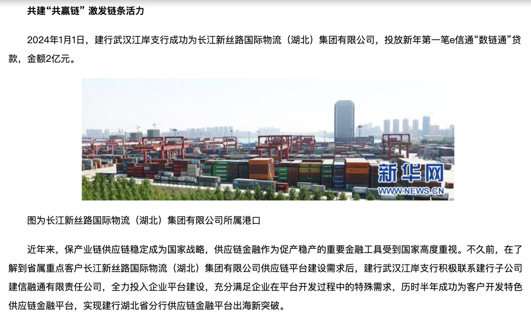 新年伊始,为贯彻落实湖北港口集团打造“三商”之综合物流集成商战略部署,物流集团与建设银行深化合作,共同研发“数链通”创新产品并实现规模投放,打响物流集团整合蝶变后金融科技融合升级第一枪。