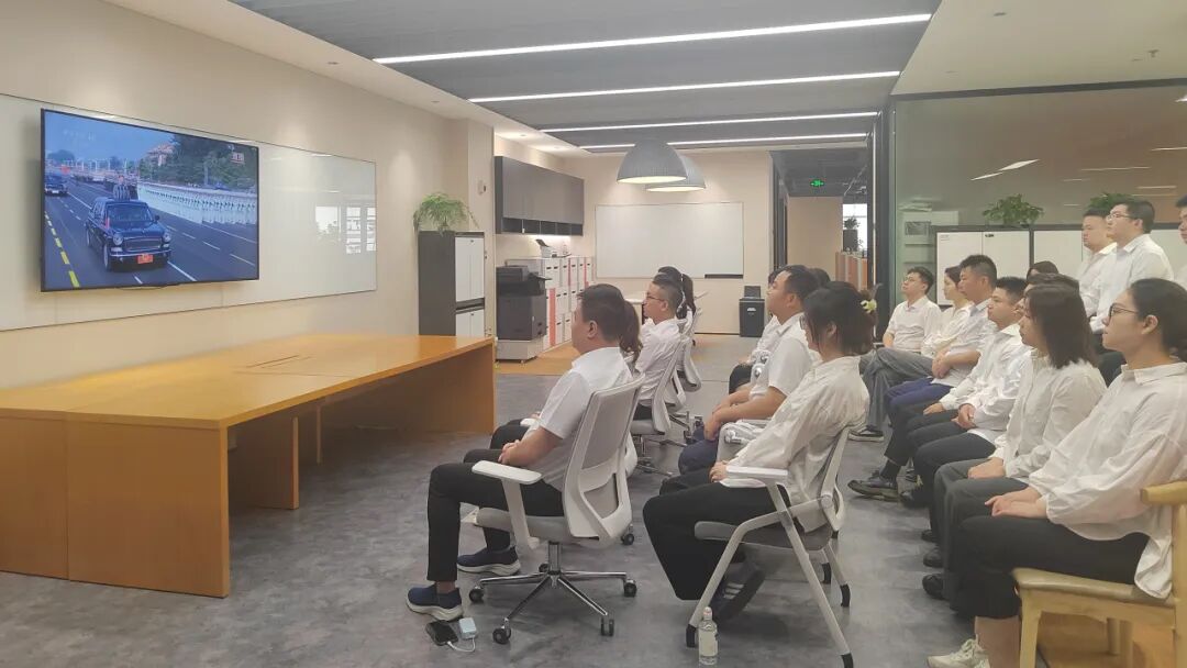 9月3日,纪念中国人民抗日战争暨世界反法西斯战争胜利80周年大会在北京天安门广场隆重举行,中共中央总书记、国家主席、中央军委主席习近平发表重要讲话并检阅受阅部队。为铭记抗战历史,厚植爱国主义情怀,凝聚团结奋进力量,物流集团组织全体干部职工集中观看了大会盛况,共同见证这一庄严而神圣的历史时刻。