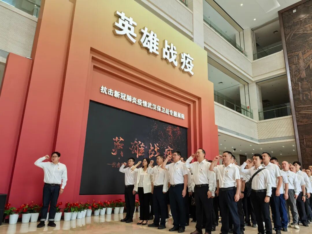 活动现场,全体党员面对鲜红党旗,在领誓人的带领下庄严举起右拳:“我志愿加入中国共产党......随时准备为党和人民牺牲一切,永不叛党。”铿锵有力的誓言在展馆内回荡,每一句誓词都承载着大家对初心的坚守,对使命的担当,也让大家再次深刻领悟到了在武汉保卫战中,共产党员冲锋在前,舍生忘死的崇高精神。