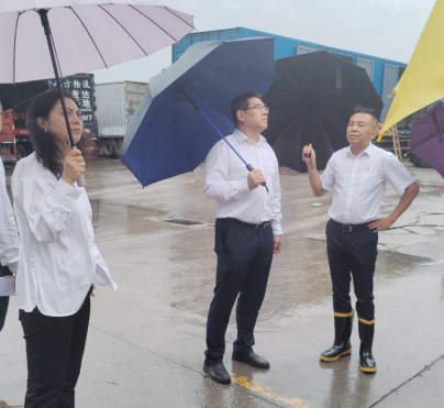 6月28日,为有效应对极端暴雨天气,切实做好重点区域和关键部位的防汛防内涝相关工作,物流集团党委书记、董事长贾峻冒雨带队前往东西湖物流园区检查安全工作。