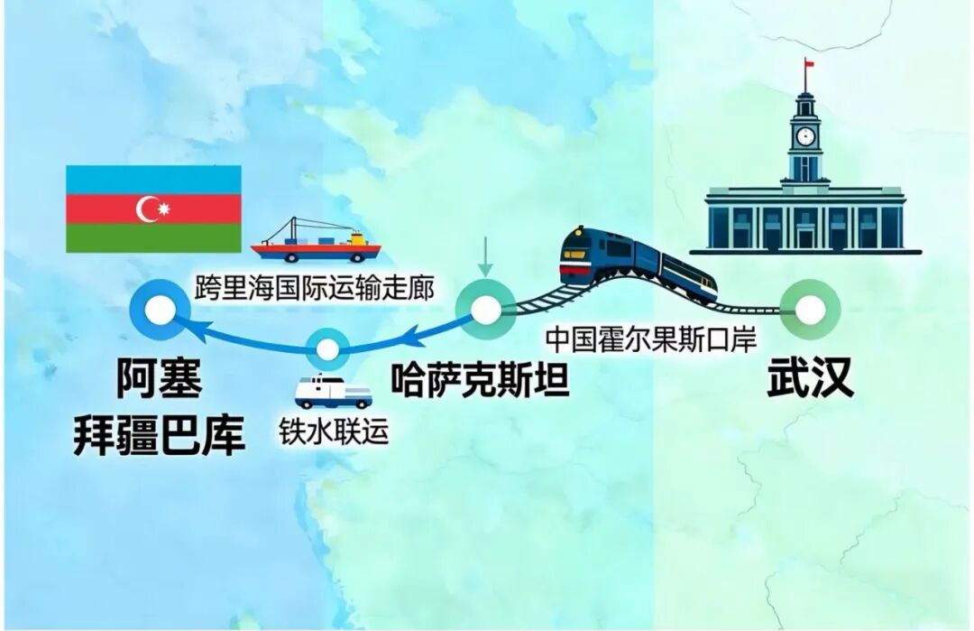 一列由湖北港口集团汉欧国际公司组织运营的中欧班列(武汉),满载电子设备、家用电器、生活用品等货物,31日从中铁联集武汉中心站发出,将经霍尔果斯口岸出境,途经哈萨克斯坦等地,最终经南通道跨里海国际运输走廊,驶向阿塞拜疆首都巴库,全程通过“铁路+海运”多式联运方式衔接,预计18天抵达。