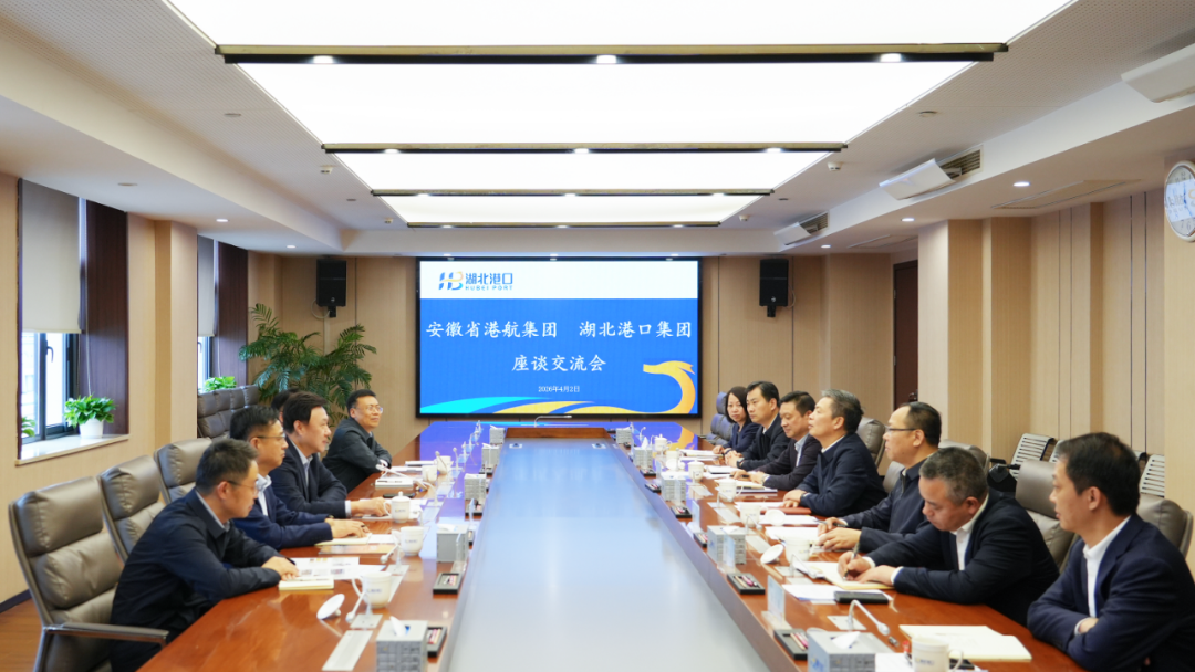 4月2日,安徽省港航集团党委书记、董事长丁庆领一行到访湖北港口集团,与集团公司党委书记、董事长周勇士座谈交流,就深化皖鄂两省港口合作、协同服务长江经济带高质量发展达成广泛共识。
